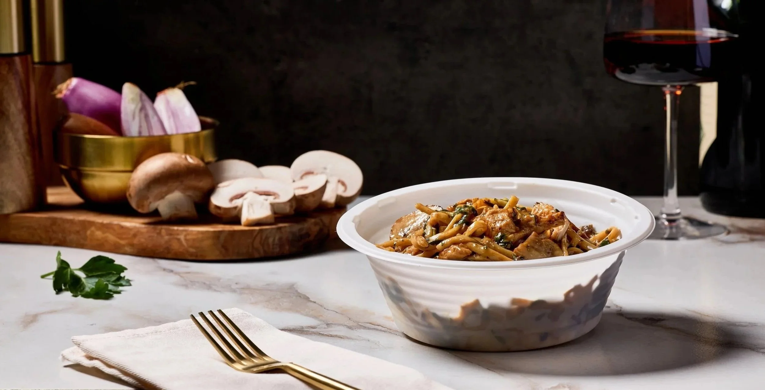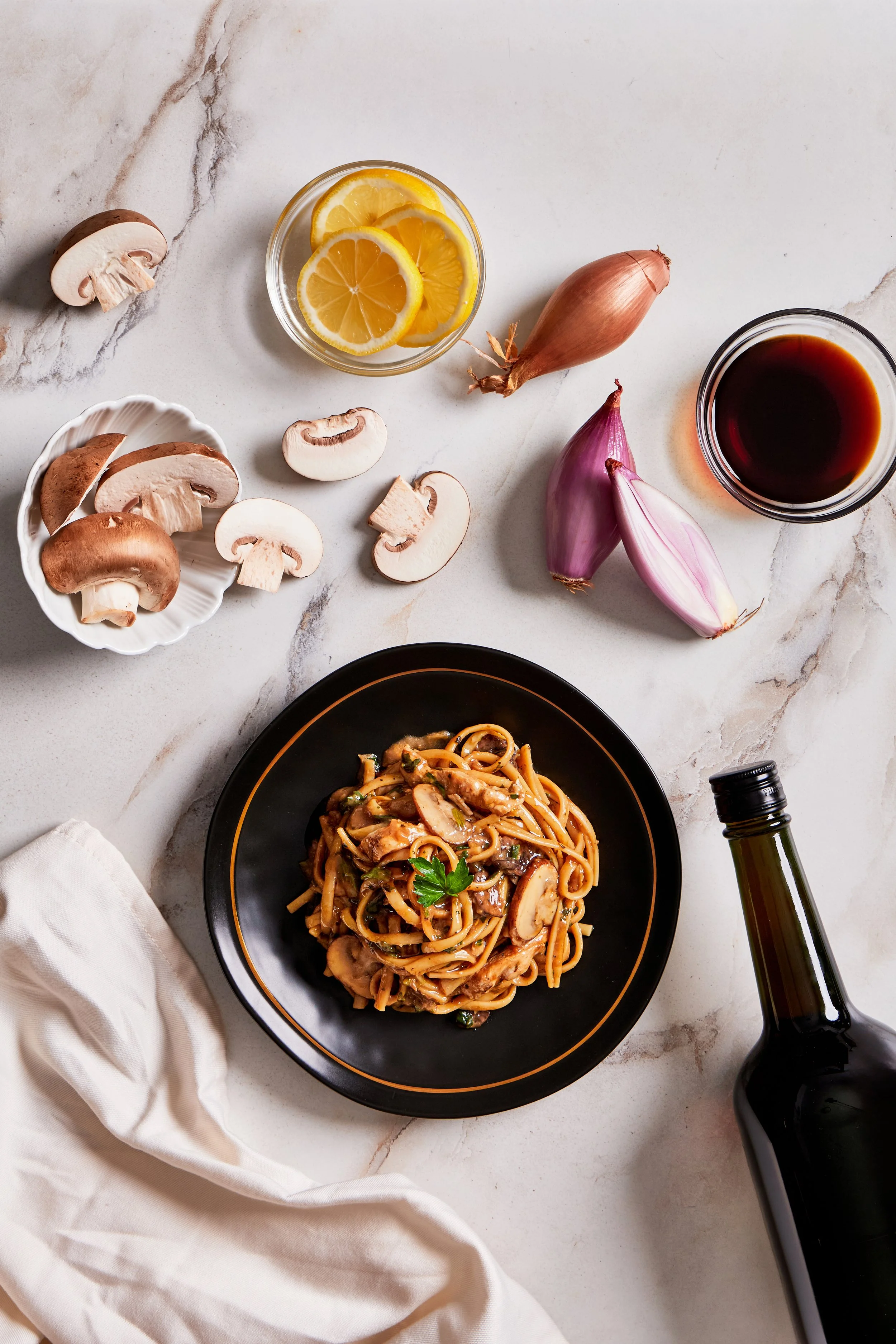 Tender chicken Marsala served with mushrooms and linguine in a rich, wine-infused cream sauce.